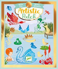 Med mettaliceffekt och kusten som motiv. Börja med att klistra fast det genomskinliga klistermärket som är "klistrigt" på båda sidorna, lägg sedan över dekorationspappret vilket kommer fastna i klistret. Kan användas för att dekorera kort, dagböcker etc.